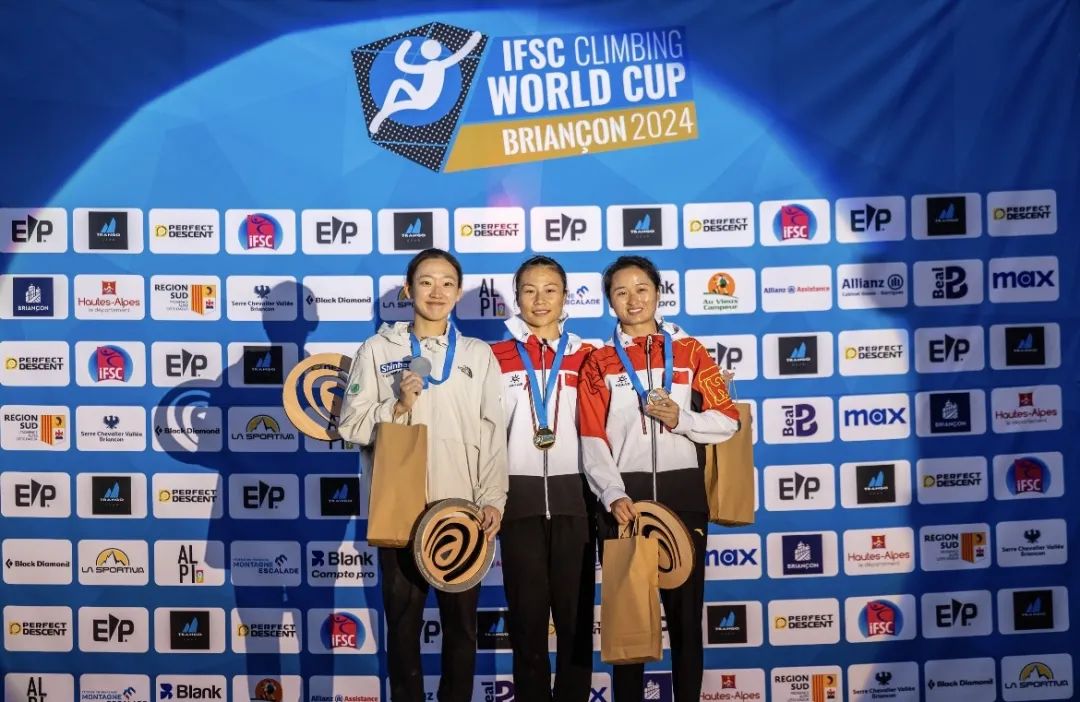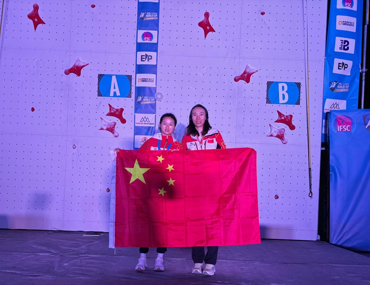 答:这次出国比赛,分为法国霞慕尼、布里昂松2站攀岩世界杯,我参加的是女子单人速度,霞慕尼站荣获第一名,布里昂松站荣获第三名,两站世界杯突破个人最好成绩。