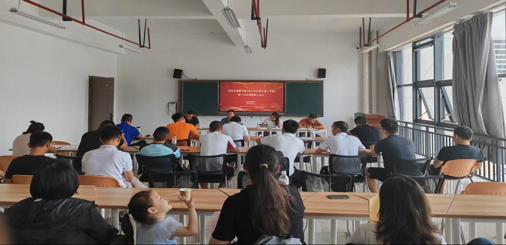 2024-2025学年第一学期第一次全体教职工会议。会议由党委书记姚思勤主持,学院全体教职工共同参加。