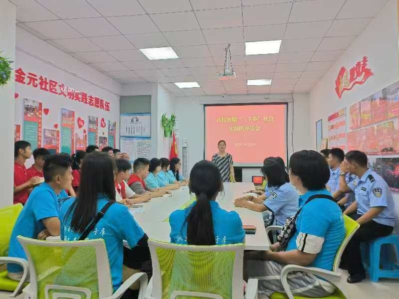 在服务中心活动室里,金元社区党总支书记、党的二十大代表袁琴为实践队开展了暑期“三下乡”座谈交流会。会上,袁琴书记热情回答了实践团队队员们的疑问。老龄化人口居多成为金元社区治理的难点之一。金元社区以“三网融合”为核心,以有“力度”、有“精度”、有“温度”的要求构筑社区共同体,不断践行“为人民服务”的初心使命,为老年人提供各种养老举措,为残疾特殊群体提供安居乐业的服务,为幼儿提供安全科学的“托育”……金元社区始终牢记总书记的殷殷嘱托,尽心尽力为民办实事,全心全意为民解难题,始终践行“基层强则国家强,基层安则天下安。”座谈会后,实践队队员对基层治理有了更深的感悟。作为青年学子,不仅要努力学习专业知识、提升自我,更要积极投身社会、服务人民,牢牢把握新时代历史机遇,将自我理想同国家复兴伟业融合,踔厉风发,勇毅前行。