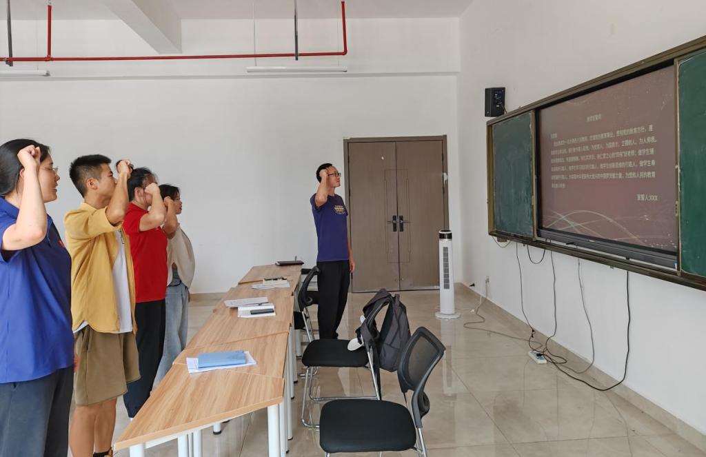 学院教学科研管理科科长彭召方作为教师代表,带领学院2024年新进教师开展了教师入职宣誓,学院组织全体教师签署了师德师风承诺书。