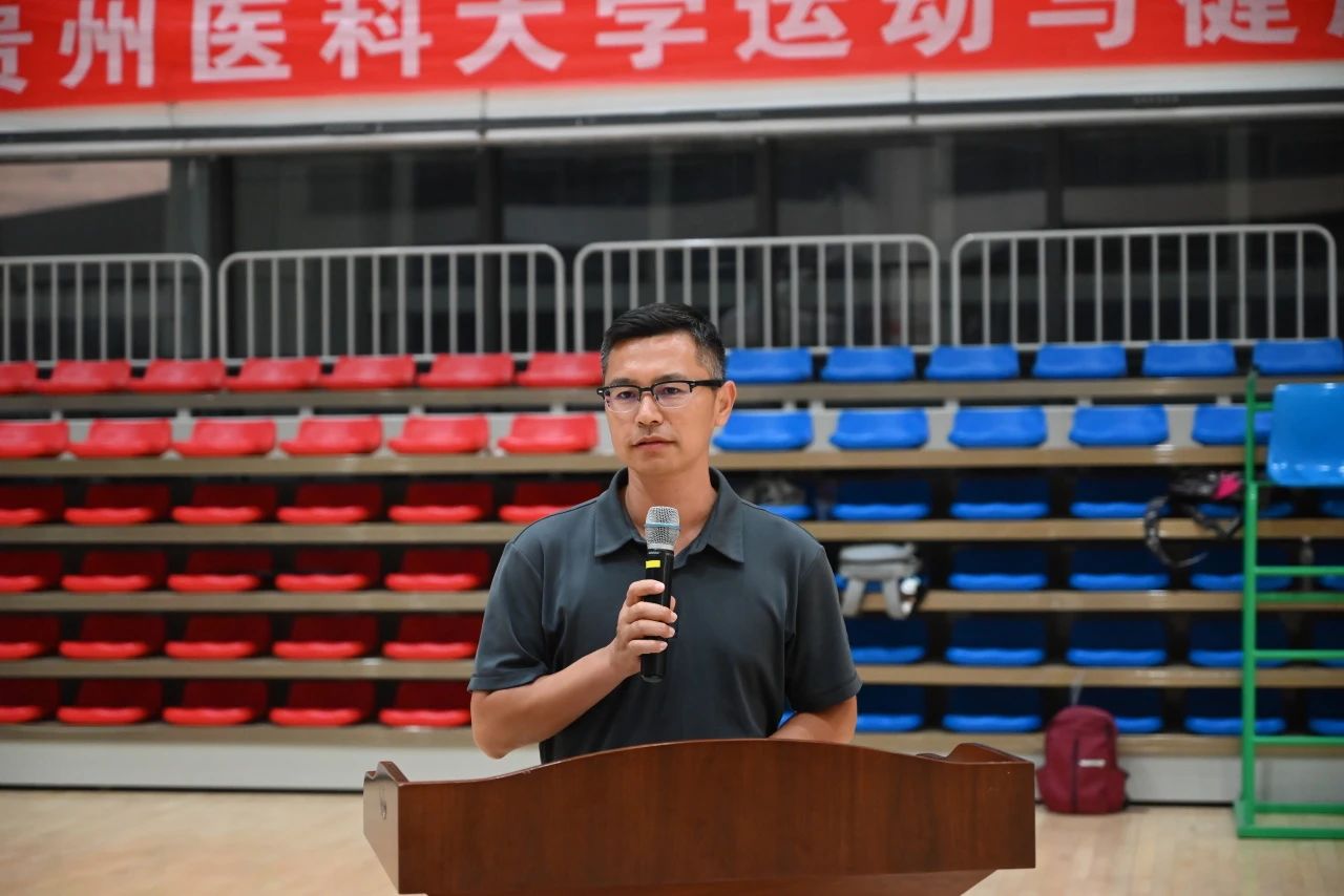 ”。她建议同学们:站在贵医这个新起点,作为学生要不退缩勇敢书写自己的青春新篇章;作为同学要共同学习体会学校的文化底蕴;作为新时代背景下的体育人要用热血创造辉煌为我国体育事业发展助力。