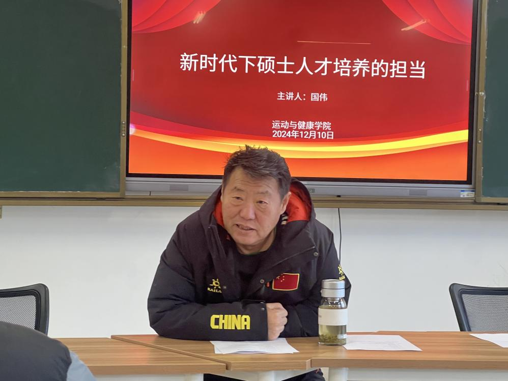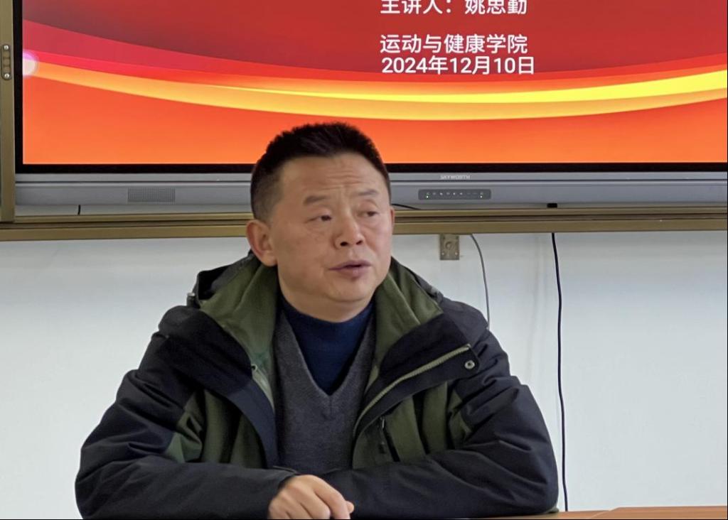 学院副院长蔡啸以“党建引领加快推进体育强国建设”为主题,阐述了党建工作在体育强国建设中的引领作用以及研究生导师在其中的责任与担当。他强调,党建工作与研究生教育紧密结合,能够为体育学科发展提供坚实的政治保障和强大的精神动力。导师们应充分发挥党建引领作用,引导学生关注国家体育事业发展需求,积极投身体育强国建设实践。