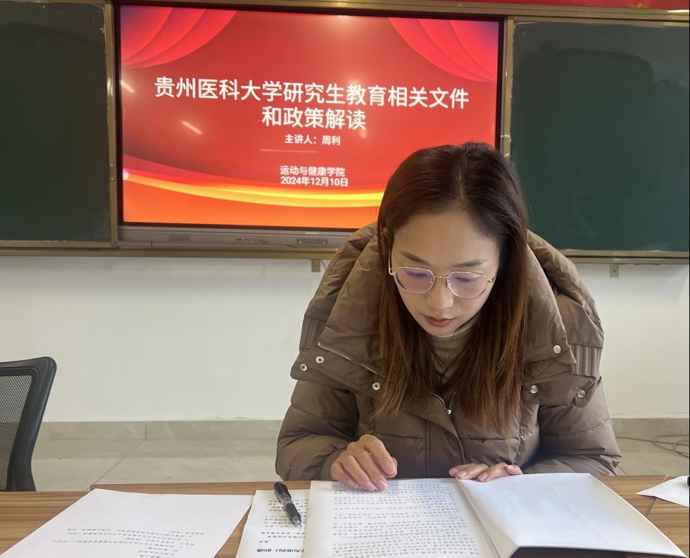 研究生教育相关文件和政策进行了详细解读。她从招生政策、培养方案、学位授予等多个方面入手,对学校的研究生教育政策进行了系统梳理,并结合学院实际情况,为导师们在研究生培养过程中的各项工作提供了明确的指导意见和操作规范,确保导师们在研究生教育工作中有章可循、有据可依。