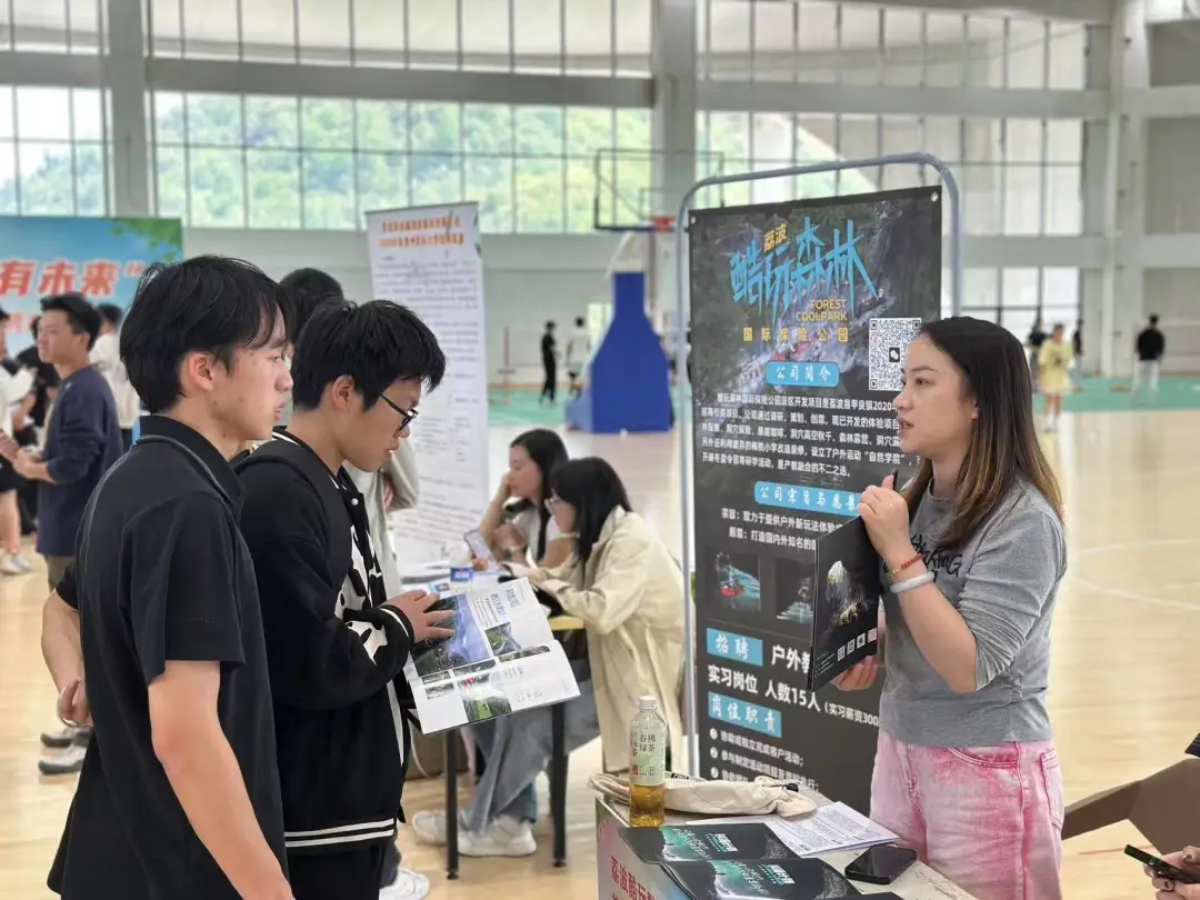 本次招聘会邀请了重庆荣昌海亮实践教育营地、淳安千岛湖逐浪者户外运动有限公司、山河勇士 (北京) 国际旅行社有限公司、贵州五行侠旅行社有限公司、杭州坚果研学旅行社有限公司、荔波县金鑫旅游服务有限公司、贵州欧力体育文化有限公司、上海舟行无际体育文化发展有限公司、泉州市志闽旅游股份有限公司、广州大江里水上运动发展有限公司、北京博游文化发展有限公司等20余家优质企业参与,提供就业岗位100余个,招聘会吸引学生300余人参与,为毕业生提供了多样化的就业选择。