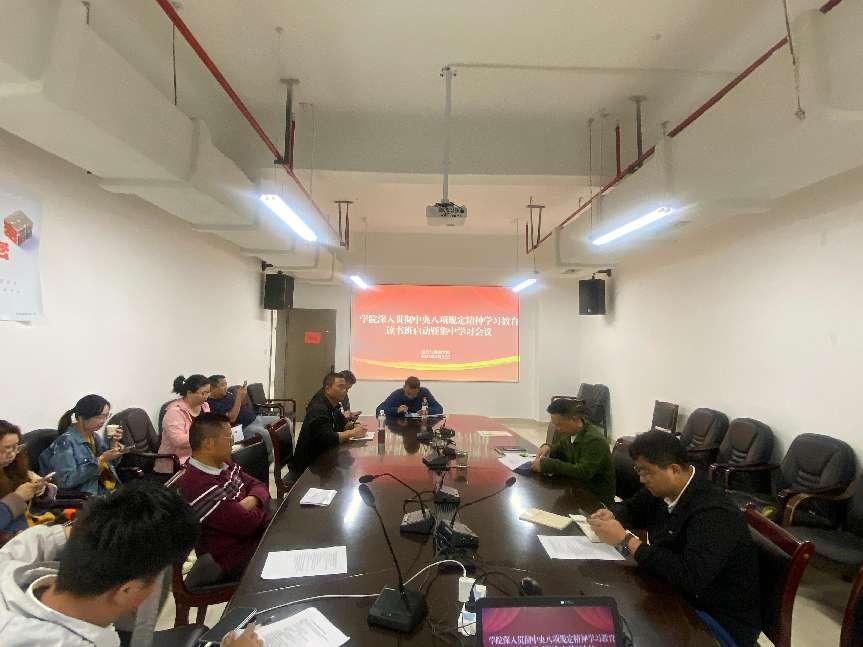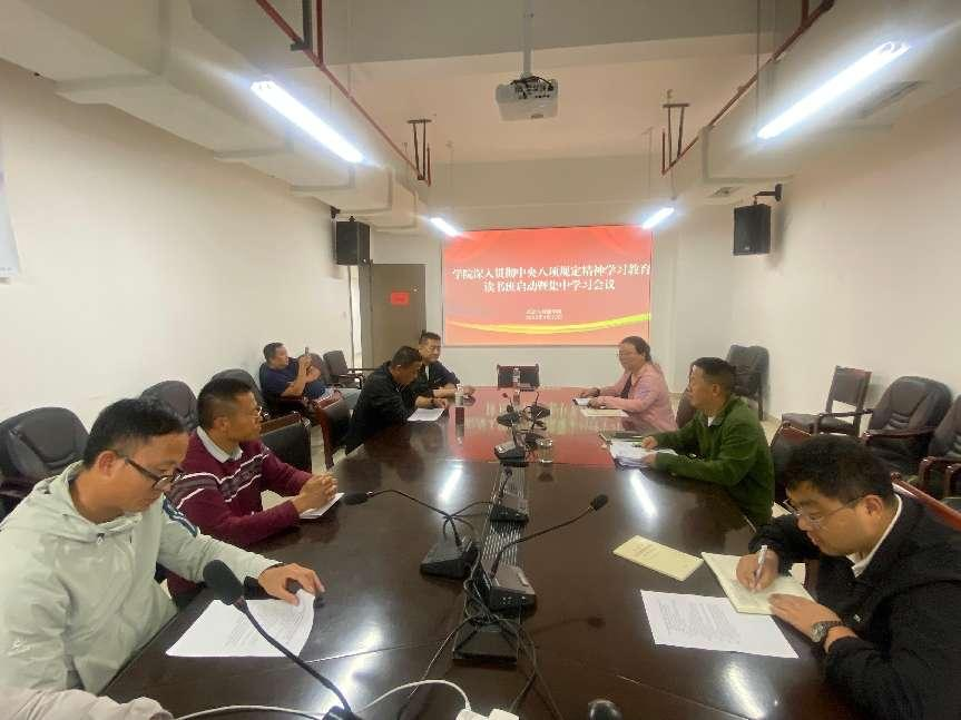4月23日-25日,学院在体育馆二楼会议室开展了深入贯彻中央八项规定精神学习教育读书班和党委理论学习中心组专题研讨会议,读书班和专题研讨会议由党委书记姚思勤主持,学院党委委员、副科级以上干部以及各党支部支委参加会议。