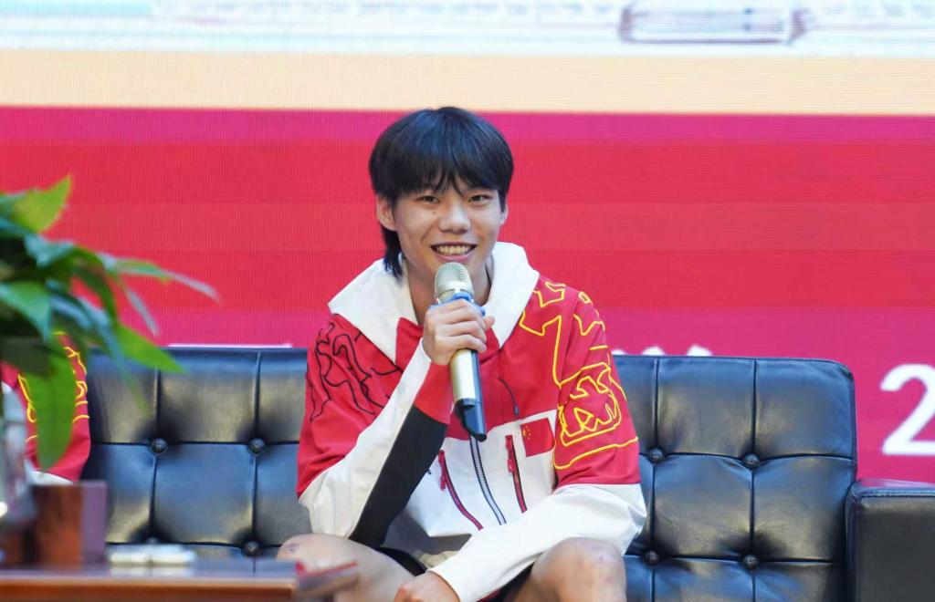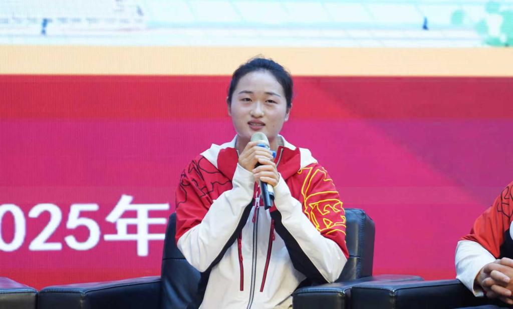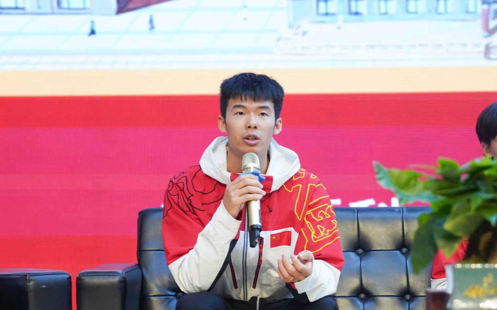 在“我与冠军面对面”访谈环节,各位冠军嘉宾围绕“初心与梦想”、“汗水与磨砺”、“团队与荣耀”、“心态与智慧”,分享与攀岩结缘的初心、战胜伤病困扰的坚韧、突破成长瓶颈的智慧、决胜赛场巅峰的拼搏故事,深刻阐释了“个人拼搏与集体力量相辅相成”的体育精神,并寄语新生“以平常心对待胜负,以进取心定义成功”,传递积极向上的人生态度。