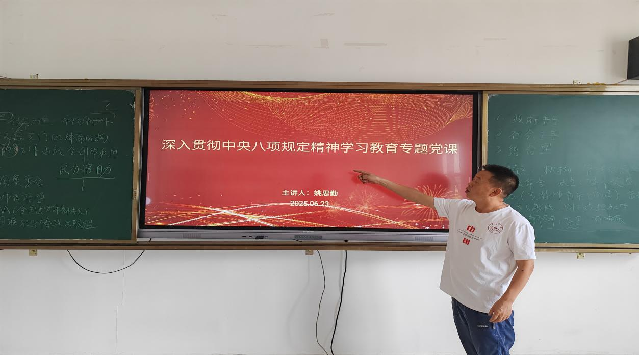 准确把握违反中央八项规定精神行为的表现形式、高标准高质量完成深入贯彻中央八项规定精神学习教育各项任务3个方面,结合学院发展过程中的实际事例,为党员开展了深入浅出的生动阐释。他要求,一是要提高政治站位,筑牢思想防线。要以习近平新时代中国特色社会主义思想为指导,把贯彻落实中央八项规定精神作为践行“两个维护” 的具体行动,自觉站在政治和全局的高度,深刻领悟作风建设的重要意义。二是严守纪律规矩,自觉规范行为。要切实做到廉洁从教和规范经费使用。三是强化担当作为,聚焦人才培养核心任务。要主动服务地方经济社会和体育事业发展需要,培养社会主义建设者。四是培育良好师德师风氛围,落实立德树人根本任务。