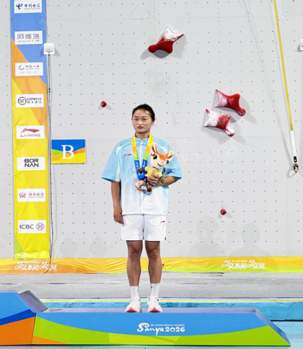 2023级运动训练专业研究生张少琴代表中国队出征,在4月28日晚的女子速度攀岩个人赛中勇夺铜牌,为国家、为母校赢得荣誉。