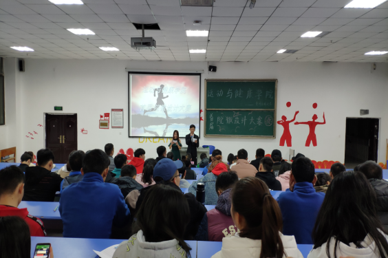 院徽设计线下评比,获得线上评比前十的参赛选手,用PPT现场汇报的形式展开角逐,此次比赛,学院党委书记姚思勤老师、学生科科长蔡啸老师、团委副书记艾登科老师作为评委,学生会干事以及各年级80名观众作为观众评审,比赛还邀请辅导员老师吁莉,综合办公室赵宇红老师担任嘉宾。