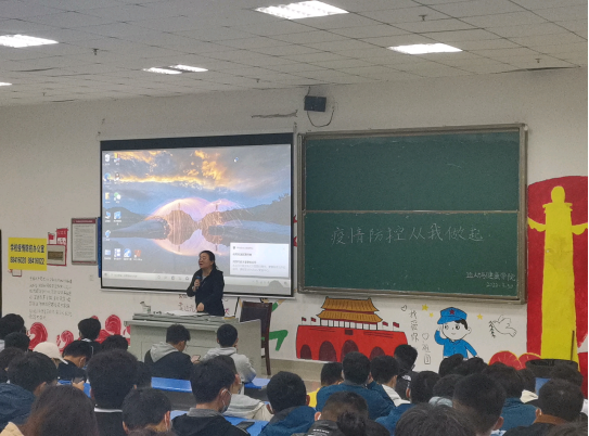 其次,辅导员围绕当前全国、全省、全校疫情防控形势;学生个人防控要点;疫情防控相关法律法规;省、市、院各级疫情防控具体要求等方面,联合班干部开展各班级的疫情防控知识宣讲,引导学生严格遵守封闭式管理纪律,规范佩戴口罩,养成良好的生活与作息习惯,坚持做好个人防护和健康监测,不出市跨省流动,更不要去中高风险地区,自觉遵守学院疫情防控的各项管理规定。