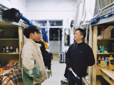党委书记姚思勤在开学第一天走访察看学生寝室,及时了解学生开学情况。学院党委副书记蔡啸、分团委书记艾登科及辅导员等陪同。
