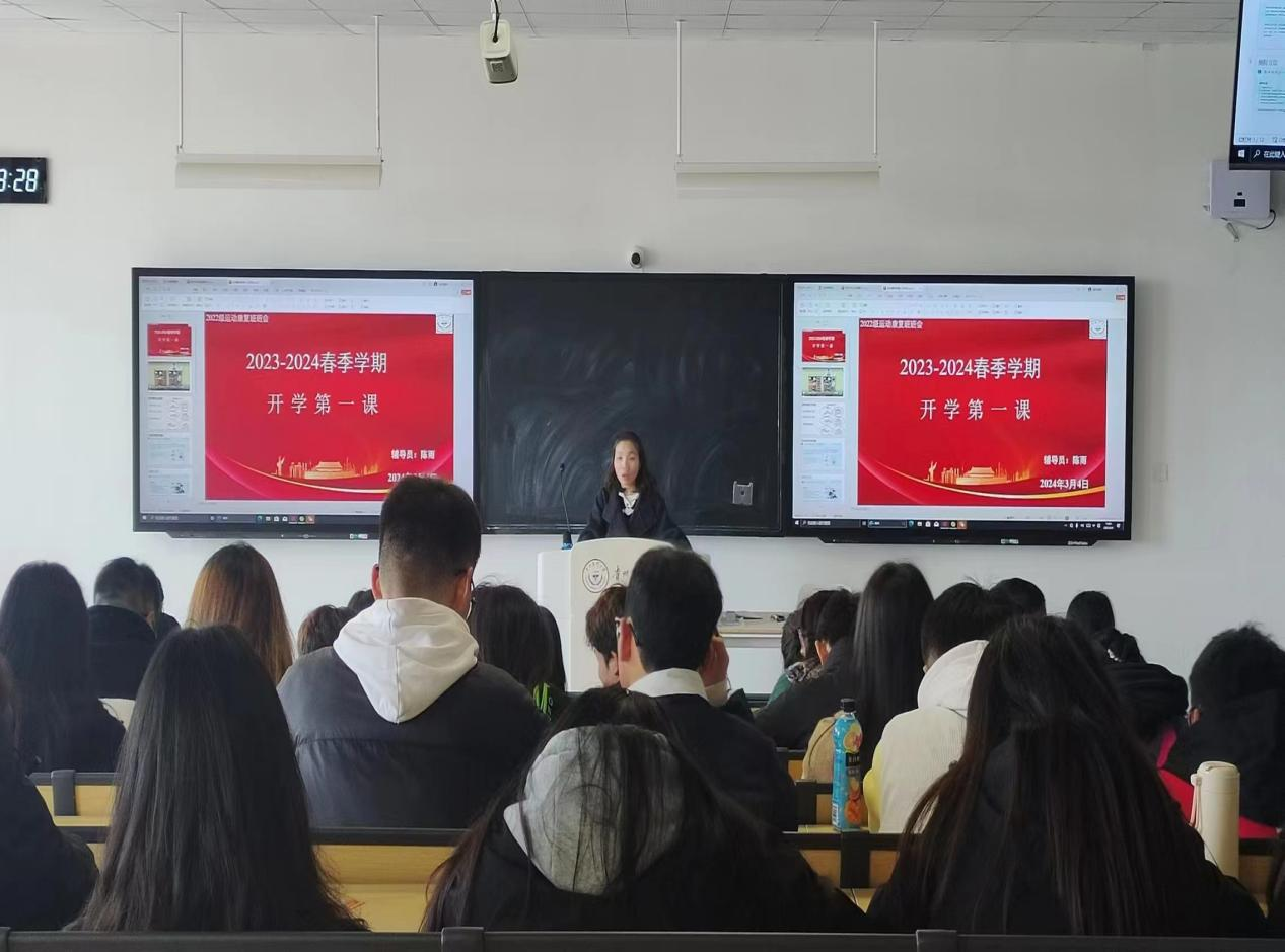 各年级、各班分别组织开展“开学第一课”主题班会,引导全体同学以昂扬的精神状态、只争朝夕的拼博劲头、脚踏实地的作风迎接新学期的到来,主题班会由各年级辅导员主持。