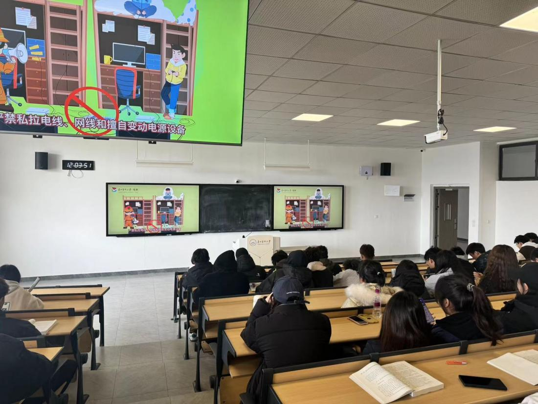 学院各年级辅导员以安全教育为主题,通过《开学第一课,校园安全“必修课”》视频集体学习,围绕电信诈骗、用水用电、校园交通、心理健康、电动车充电等方面展开,逐步增强同学们的自我保护意识与能力,让同学们紧绷“安全弦”,以“安全”为主要关键词,结合身边实际案例,向同学们介绍反电信诈骗、宿舍用电安全、交通安全等方面的内容,叮嘱大家要自觉做到遵规守纪,提高安全意识,保护好个人财产。所有同学现场签订了2023-2024学年第二学期安全告知书,做自己安全的第一则责任人。