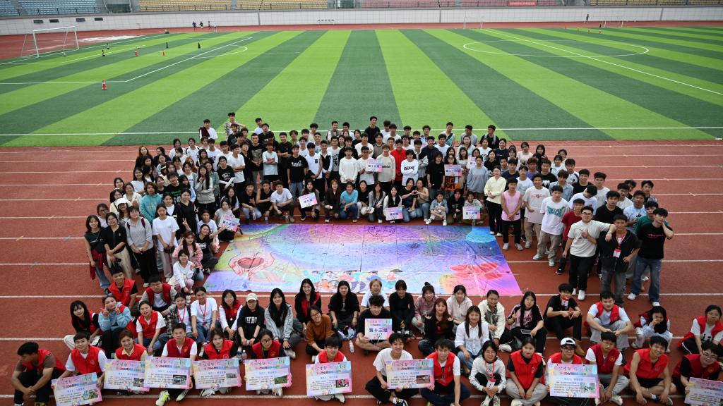 哨声一响,每一位同学都精神振奋、斗志昂扬、全力以赴,在运动场上挥洒汗水,拼搏接力,完成规定任务。在所有同学的努力下,绘制出了一副纳斯卡巨画。