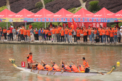 龙舟队与江苏省龙舟队、都匀经济开发区猛龙队为第一组。三轮比赛下来,我队以第四名进入了决赛。在决赛中,大家奋勇前进,把这支不是专业的队伍发挥得比专业队伍更出色,最终以总名次第五获得这次比赛的三等奖。肥猪、美酒,不负也。