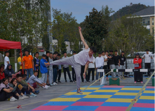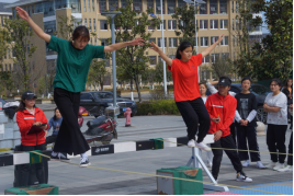 扁带训练队2017级队员上演一出现实版“小龙女”。在观众席中取得了热烈的掌声及欢呼声。扁带队精彩的表演,让大家更进一步了解了扁带运动,感受到了扁带运动的魅力。