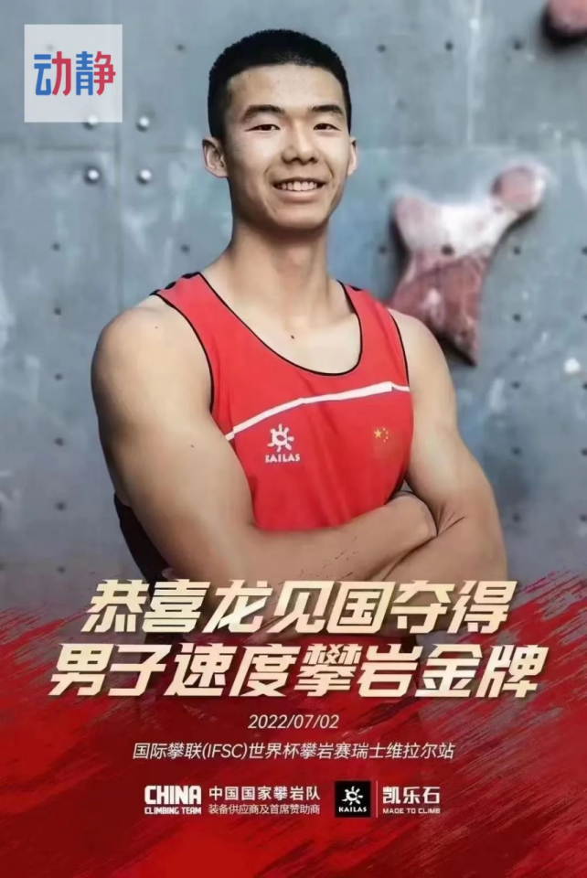 7月2日凌晨,中国攀岩队在2022国际攀联(IFSC)世界杯攀岩赛瑞士维拉尔站速度决赛中大获全胜,贵州省攀岩运动员龙见国不畏强手、奋勇拼搏,获得本站世界杯男子速度冠军!龙见国、伍鹏、龙金宝包揽男子金银铜牌。女子方面,邓丽娟与牛笛包揽金银牌。