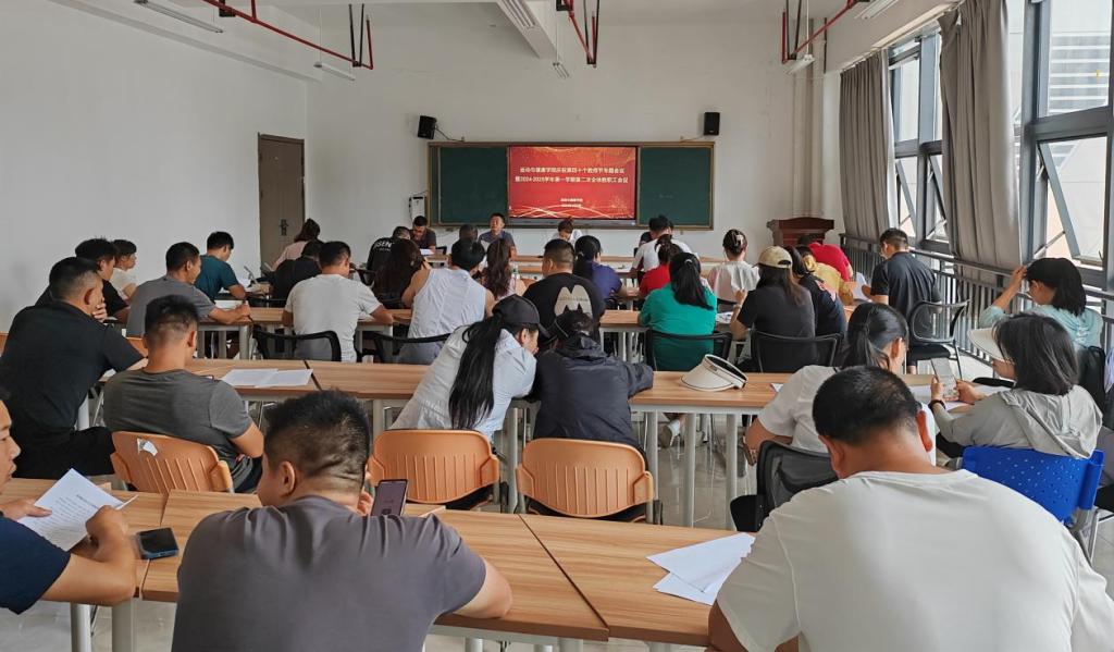 在体育馆M层研究生多媒体教室召开庆祝第40个教师节专题会议暨2024-2025学年第一学期第二次全体教职工会议。会议由党委书记姚思勤主持,学院全体教职工共同参加。